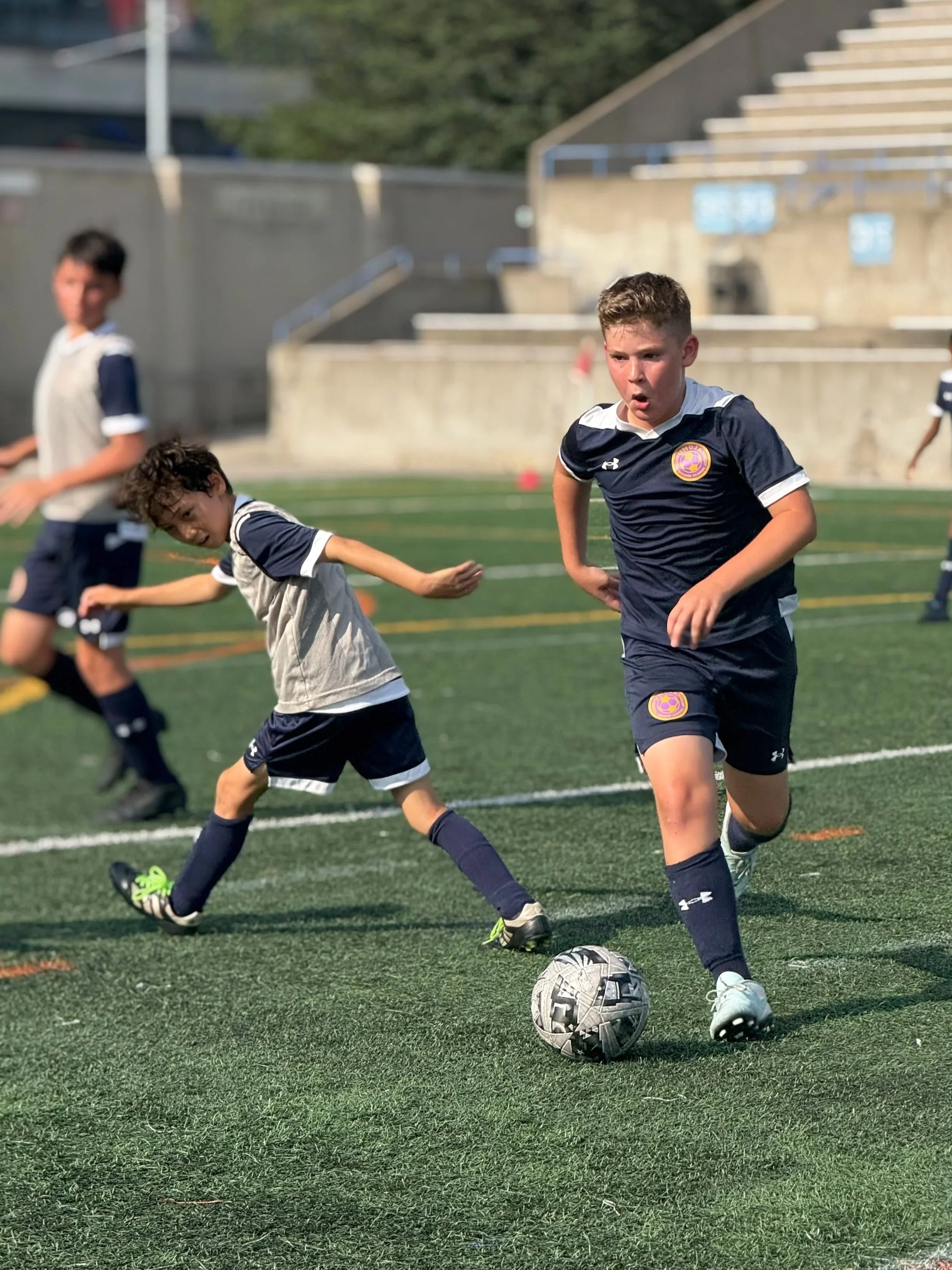 Indoor Futsal (Oct → Apr): High-tempo, technical league play to accelerate ball mastery and speed of play.